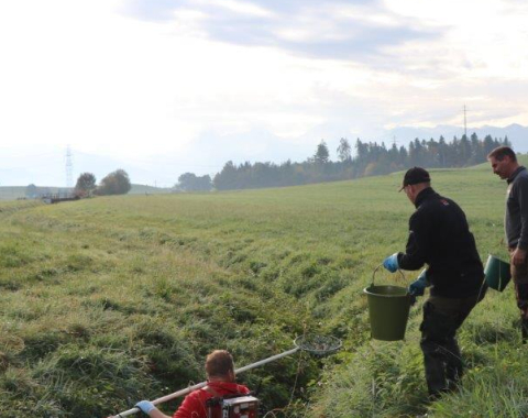Im September war es so weit : Die gut herangewachsenen Fische wurden mit Hilfe der Vereinsmitglieder abgefischt und in die Gürbe umgesiedelt. Fortpflanzungsfähige Exemplare wurden in einen Weiher in Wattenwil gebracht um anschliessend für die Entstehung der nächsten Generation zu sorgen, bevor auch sie in die Gürbe umziehen dürfen.